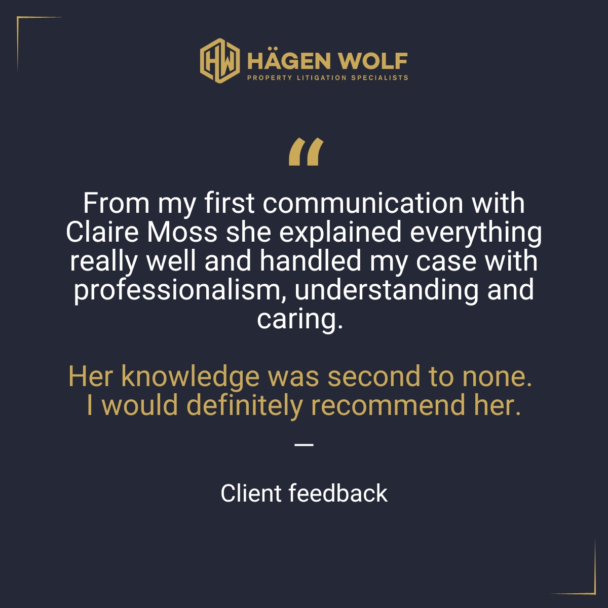 Claire is a legal director and has been a qualified solicitor for 18 years. Before joining Hagen Wolf, Claire was a partner and head of dispute management at Lupton Fawcett.